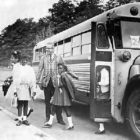 Principal Ed Humphrey greets students from Hartford’s North End upon their first arrival at Spaulding School in September 1968.