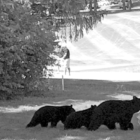 Golfers on the green at Hole 1 are oblivious as this bear family treks across the Suffield Country Club in mid September, with Momma and her bird seed loot followed by three cubs.