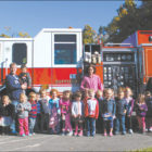 Staff and students of the Suffield Cooperative Preschool pose with one of Suffield’s big engines. The firefighters came during Fire Prevention Week in October and taught “Drop and Roll” and “Cover Your Eyes.”