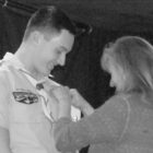 Stone Nadeau smiles proudly as his mother, Joanne Maiolo-Nadeau, pins his new Eagle Scout badge, presented in Boy Scout Troop 260’s traditional Eagle ceremony at Second Baptist Church on February 14.