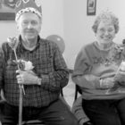 King Michael Olzcewski and Queen Nancy Berry reign happily from their improvised thrones.