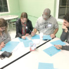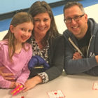Second grade Spaulding School student Anna Burnham enjoys the school’s annual Pizza Bingo Night tradition with her parents, Dawn and Dan Burnham.