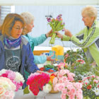 Garden club members are busy in the members’ booth at May Market at the Phelps-Hatheway House on May 13.