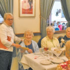 Suffield Garden Club President Judy Hanmer hands an award certificate to Norma Cobb for her 50 years of service to the Club.