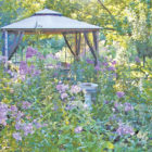 One can imagine the heavy, sweet scent enveloping this gazebo almost hidden in a wilderness of lavender phlox.