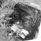 This view looking down into the guard lock at the north end of the Windsor Locks Canal shows the immense stone that fell from the side-wall of the lock in late summer, leaving the upper tier of the wall in precarious but stable condition.