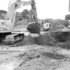 October 6 and 7, after many months of idleness at the construction site, excavation work was under way at the incomplete Broad Brook Brewery on South Street. Proprietor Eric Mance was there to consult with another contractor as the back hoe from Diversified Services, an Enfield company, did its work.
