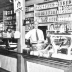 That’s Ray Bugbee behind the counter of O. C. Bugbee & Son, the general store next door to the West Suffield Congregational Church, probably in the mid-1930s.