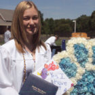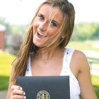 Pictured on June 16 at Suffield High after the big event, Megan Castoldi’s mortarboard cap proclaims her achievement.