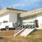 By mid-November, the grit blasting to remove ceiling paint judged to be the primary cause of the airborne PCB in Kent Memorial Library had been completed, and attention was directed to the floor, from which all the carpet squares and faux wood flooring had been removed, leaving adhesive residue. With all the windows blanked out by plastic to protect the glass, library aficionados couldn’t watch the work, but it’s certainly been gratifying to hear reports on the progress.