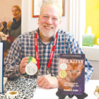 At First Church, Shawn Flynn proudly displays his book, The Kitty. He claims the kitty rescued him after he rescued the kitty.