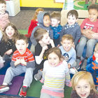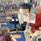 Celine Zaczynski is pictured with happy students at the Suffield Co-operative Preschool, to whom she was reading her new book, Where is Owen Going?