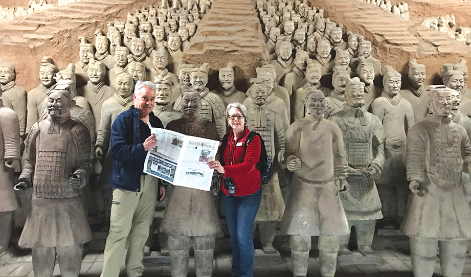 Up close and personal with the Terracotta Warriors in Xi’an, China, Roy and Donna Gosselin share The Suffield Observer with one of the front rank soldiers. Estimates indicate that the site contains 8,000 of the soldiers, along with horses and chariots.