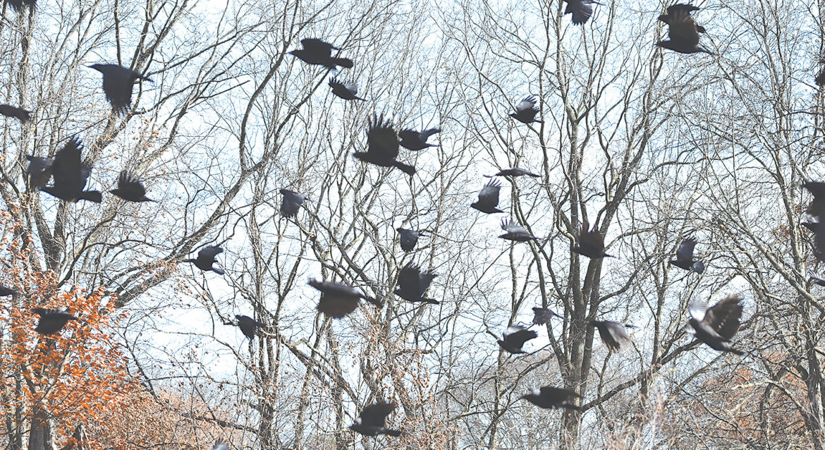 I remember my friend when I see crows gathering through fields or cawing at me from the telephone wires, and they are doing plenty of that these days. With their breeding season behind them, the crows are out scavenging, feeding on the ground and eating almost anything, including worms, fruit, insects, garbage, and carrion. In the spring, crows build a bulky nest of mostly sticks lined with soft moss, and lay between four and six eggs. When the young hatch, they are tended to by both parents and by their siblings from previous generations who have yet to go off and raise their own families. Crows take several years to mature, and this is advantageous to each new clutch as the crows model the “it takes a village” approach to rearing their offspring. These helper crows can fine tune their parenting skills before shacking up on their own. The helpers are usually youngsters from another brood, and they are quite willing and capable of bringing that next batch of pink-skinned, chirping flesh along to maturation. Going full circle, when an elder crow draws its last breath, other crows have been known to stand vigil over the body. Perhaps they are the sending the passed crow off or contemplating life and death in their crow world. Needless to say, crows are considered one of the smartest birds, and they have adapted well to life among humans. Crows have been known to recognize and voice their opinion regarding human facial features and react accordingly, not necessarily hiding their true feelings. They are crafty and may choose to follow other birds to seize whatever food they may have or to wreak havoc with their nestlings. To top off all this sophisticated behavior, they have been observed using tools. A captive crow used a cup for water and wild crows are resourceful enough to shimmy a stick down a hole in search of some pretty tasty insects. You don’t see sparrows doing that!