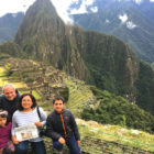 The Lamberti family made the long, last-stage climb to this famous spot to view the ruins of Machu Picchu in Peru, seen here behind them. Posed with the Observer are, from the left, Marcella, Dad Mike, Mom Monica, and Jake.