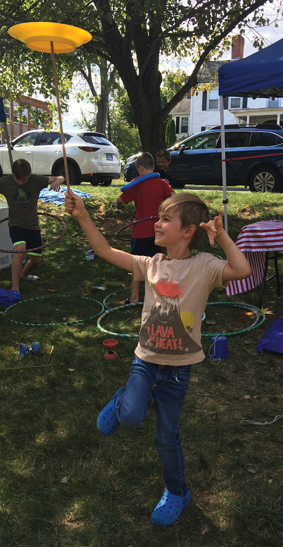 Circus Moves taught tricks to kids on Saturday. Here young Luke O’Leary spins a plate on a stick while standing on one leg.