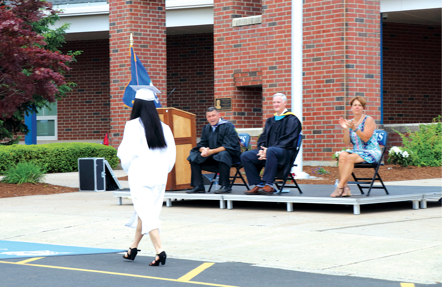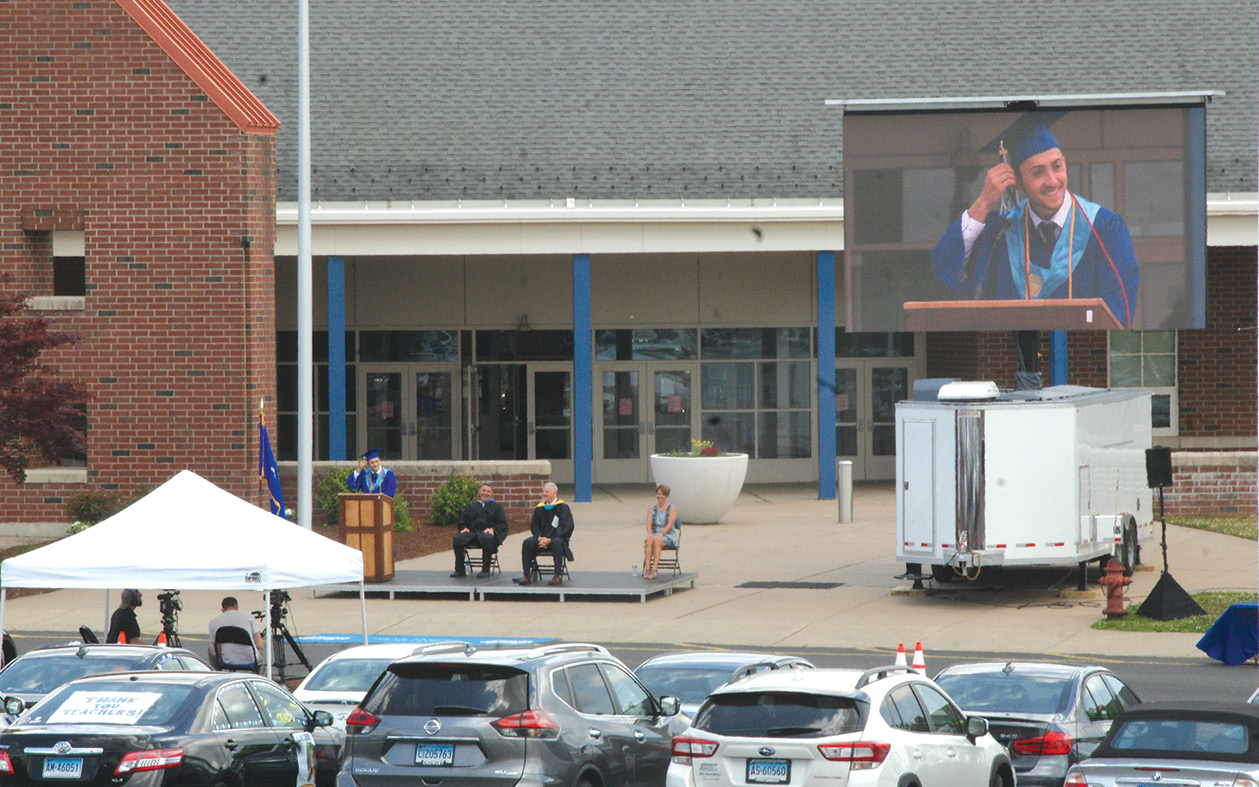 As the Class of 2020’s graduation date inched closer, it seemed nearly impossible that the district could get 183 high school graduates and their families at Suffield High School onto Beneski Field to celebrate together due to the social distancing restrictions put into place by the State of Connecticut. Over five weeks, Suffield High School’s 2020 graduation ceremony had many renditions, twists and turns, but in the end, even though the graduation had to break with tradition due to COVID 19, it was a graduation to remember. In collaboration with our district’s leaders, the Board of Education, the high school administration, our First Selectwoman and the Police Chief, the district landed on a drive-in graduation where all students could graduate together while abiding by the state regulations set forth by the Governor’s office. Superintendent Tim Van Tasel demonstrated exceptional guidance, leadership and flexibility throughout the entire planning process. First Selectwoman Melissa Mack displayed partnership and willingness to work collaboratively with the district to ensure not only that our graduates were honored, but that we also kept our community safe. Becky Osleger and Bill Hoff worked tirelessly on the technology and budgetary concerns and put together an event that Hollywood would be proud of in terms of production and quality! Mark Cervione, Larry Plano and their staff beautified the high school grounds and organized over 200 cars so that we could execute a graduation that could be socially distant yet have a personal touch. The high school administrators worked around the clock to organize and plan the details which would encompass the spirit and the sentiment that the graduates desperately wanted and were fearing wouldn’t be realized. Finally, Chief Brown and his police department maintained safety and order of the event which culminated in a senior parade down Mountain Road that brought a tear to the eye of many parents, put a smile on the faces of all of the graduates and a sense of pride to the entire townspeople of Suffield, young and old.