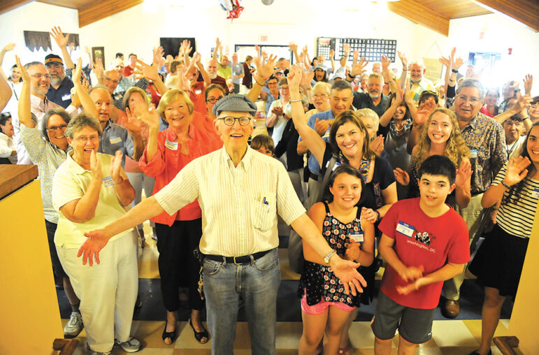 Lester celebrates with a large crowd of well-wishers at his 90th birthday party at the Suffield Senior Center in 2017.