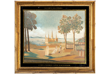 The Suffield Historical Society is excited to announce its summer exhibit at the King House Museum & Barn, Artists of Suffield. Suffield has long celebrated its rich history, and artists who lived or worked in town have a remarkable legacy of their own. Spanning three centuries, the exhibit will feature highlights from the Society’s collection, including a stunning recently-acquired silk and watercolor embroidered scene from Shakespeare’s Hamlet, made by Elizabeth Leavitt (later Loomis, 1788-1865) made in 1806, when she was a student, likely at the Misses Pattens’ School in Hartford; a unique wood carving made by Willis Seaver Adams (1842-1921) for his home on East Street; and, recently-donated works by artists Alice Ahrens Williams and Peggy MacKinnon.