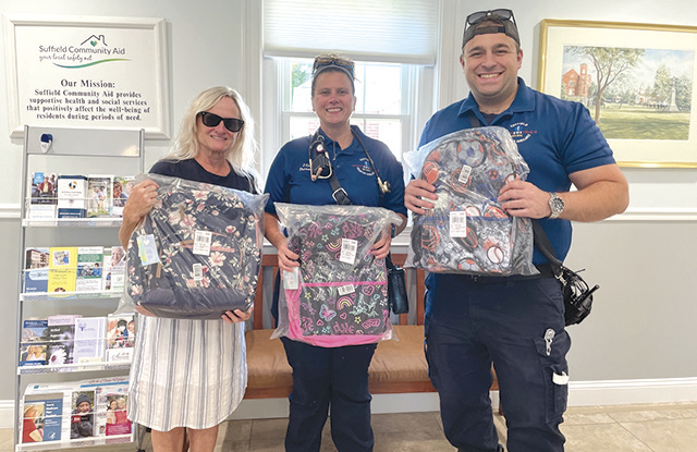 Thank you to Suffield Volunteer Ambulance Association (SVAA) for the backpack and supplies for our Return to School Backpack Drive. Pictured left to right: Lorianne Nutini, Jackie Guzie and Doug McIntos from SVAA.