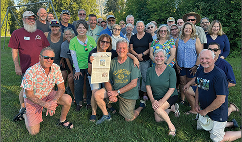 Lucille and Scott Miller holding the Observer with their Adventure Caravan friends in Hazelton, British Columbia, Canada. We started the trip as strangers but ended as friends during the 63 day Canada-Alaska camping tour.