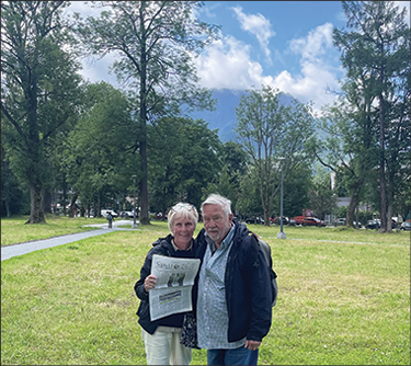 Carol and Tom Kaput reading the Observer in Zakopane, Poland at the base of the Tatra Mountains.