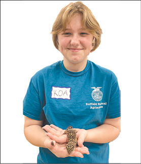 10th-grader Koa Matteson showed off Apollo, a leopard gecko, at the Agriscience Open House on November 6.