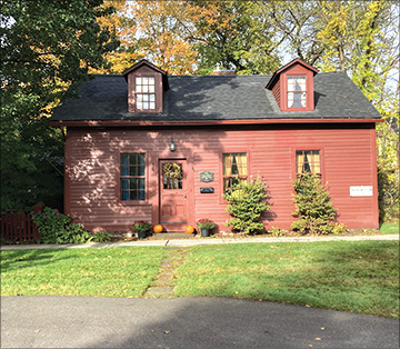 Built in 1776 and known as The Saddle Shop, Consider Williston, who fought in the Revolutionary War, had this shop built to house his leather goods business where he made and sold saddle bags and saddles. It was eventually converted to a private home and displays stunning colonial era wide pine floors, exposed beams, and even the original fireplace. The exterior wood siding and gently sloping roof preserve the Georgian-Saltbox typical of late 18th century New England dwellings.