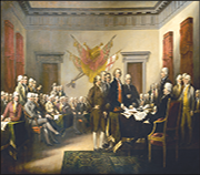 The painting shows 42 of the 56 signers of the Declaration. He painted most of them from life. He knew them! Trumbull painted so many revolutionary leaders and scenes from the War that he has been called the “Painter of the Revolution.”