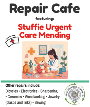 If, along with your dull knives, ripped seams, broken lamps and cracked wooden chairs, your family has stuffed animals that need mending, please bring them to our Repair Cafe on Saturday, January 24, at the Senior Center, located at 145 Bridge Street, between 10 a.m. and 2 p.m.
