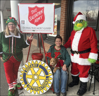 Helped by the Grinch, one Elf, and one very cute puppy, Rotarians “Ring the Bell” during the holiday season to raise money for the SCA.