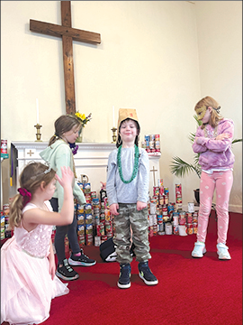 We started this tradition three years ago in memory of a parishioner, Deborah Halladay Pierce, a beloved town schoolteacher and long time Sunday School teacher. Debbie loved, loved, loved children so we thought it appropriate to have her be the inspiration for this event. The children collect cans while we grownups get cooking. During our service the children go out into the congregation and collect the cans. They pile them high and then we follow our service with a potluck of homemade soups and bread. The children always sneak up to the sanctuary and make can sculptures and count their takings.