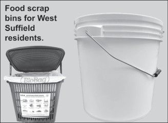 To help West Suffield residents get started with food scrap collection, Sustainable Suffield will be handing out appropriate collection bins and biodegradable bags on Saturday, March 14, from 9 a.m. to 11 a.m. at the Ebbs Corner fire station on the corner of Copper Hill and Mountain Rds.