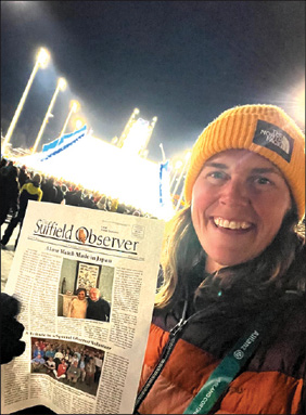 Deedee Presser is working at Lavigno, Italy for the Winter Olympics and reads the Observer between races.