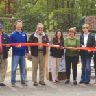 Over 40 interested folks gathered at Sunrise Park on Saturday morning, May 8, to celebrate the opening of a new nature-theme playground next to the parking area by White’s Pond and the Rotary Pavilion – the heart of the big mountainside park.